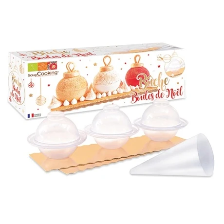 Découvrez ce kit pour bûches en forme de boules de Noël avec lequel vous allez réaliser à coup sûr, la plus belle bûche maison jamais réalisé. Ce kit comprend :
