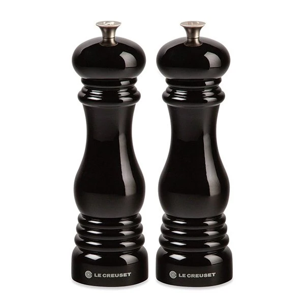 Les Moulins à sel et à poivre noirs Le Creuset allient forme classique, technologie moderne et couleurs iconiques de la marque.