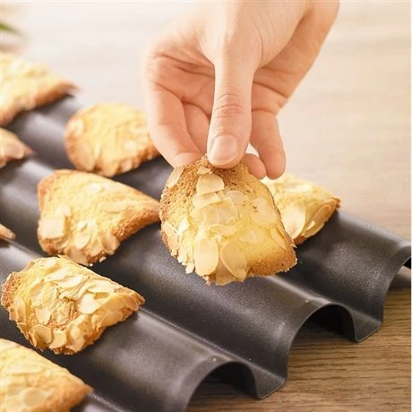 La plaque à tuiles antiadhésive en acier vous permet de confectionner très simplement des tuiles croustillantes et bien bombées. Le revêtement antiadhésif assure un démoulage et un nettoyage faciles car la pâte n’attache pas. De grandes dimensions, elle s’adapte à la taille de votre four et permet de réaliser des tuiles en grandes quantités.