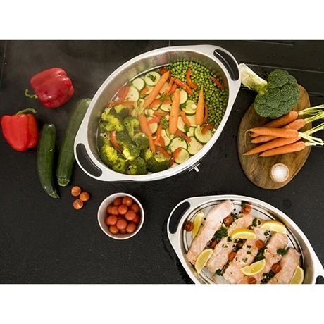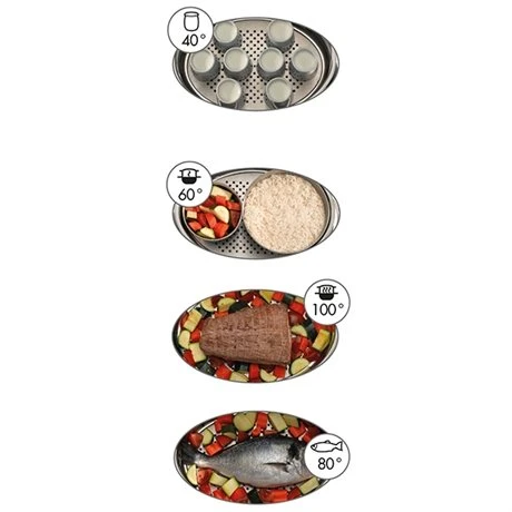 Pour s’adapter à vos quantités et types de plats, le cuit vapeur Magimix est fourni avec un panier vapeur, 2 bols de 5,5 L et un bol à riz de 2 L avec couvercle en silicone, fait pour résister au chaud et au froid. Alternez entre les recettes, artichauds, risottos, œufs grâce au support inclus, avec un seul et unique appareil, pour un gain de place significatif sur votre plan de travail. Et pour prendre soin de votre santé, la fonction vapeur est doté d’un système qui préserve jusqu’à deux fois plus la vitamine C qu’un autocuiseur traditionnel. Pas besoin de temps pour une cuisine saine, il vous suffit de disposer du bon appareil.