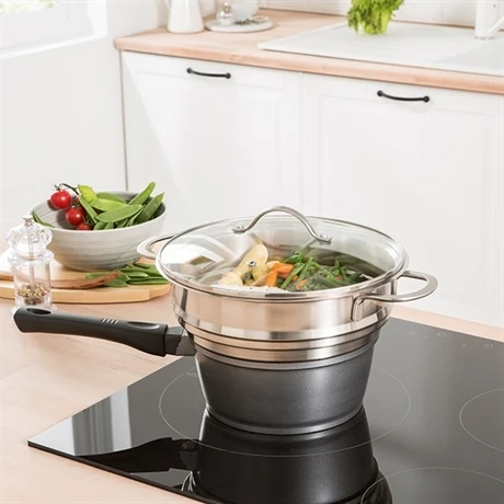 Pratique, il s’adapte sur les faitouts, casseroles et sauteuses de 20, 22 et 24 cm de diamètre.