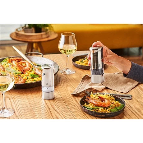 Le moulin à sel électrique Zéli vous permet d’assaisonner vos plats par une simple pression du bouton situé sur le dessus du moulin. Il fonctionne avec six piles fournies et dispose d’une lampe intégrée afin de contrôler la quantité exacte d’épice ou de condiment que vous voulez ajouter dans votre assiette. Caractéristiques techniques : ABS nickelé brossé, moteur garanti 3 ans.