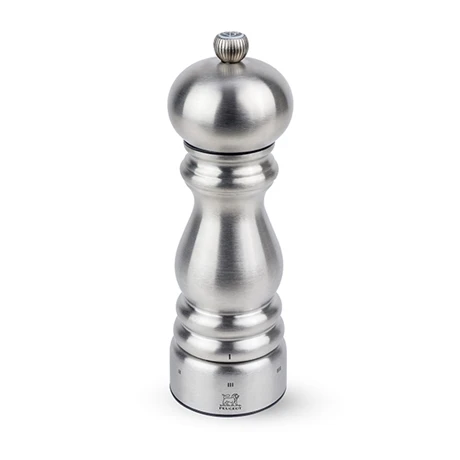 Ce moulin de 18 cm de hauteur fait partie de la collection « Chef » de Peugeot qui reprend le modèle le plus emblématique de la marque dans une version plus moderne en inox. Les deux moulins manuels sont fabriqués en France par Peugeot. Leur mécanisme U Select permettant un réglage très précis est garanti à vie.